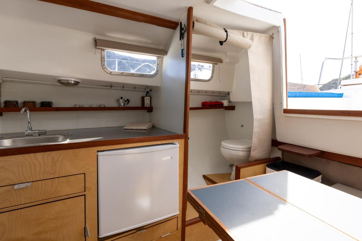 Este barco dispõe de 1 quarto, uma kitchenette totalmente equipada com frigorífico e placa de fogão, e 1 casa de banho. Toalhas e roupa de cama são providenciadas neste barco.